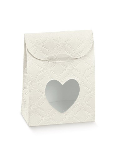 10 PEZZI DI SCATOLE BUSTINA MATELASSE' BIANCO CON CUORE IN PVC