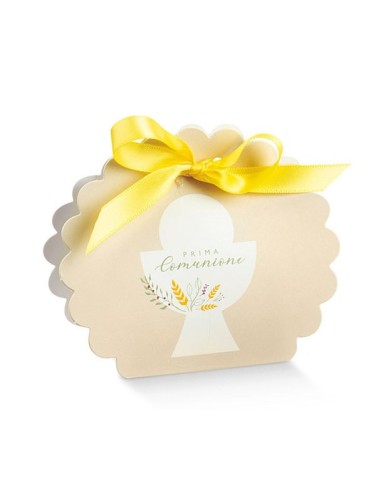 10 PEZZI DI SCATOLINE BORSA ROTONDA CON IMMAGINE CALICE COMUNIONE