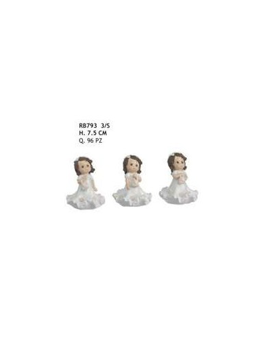6 PEZZI DI STATUINA BIMBA CON BORSETTA IN RESINA IN BIANCO E ROSA