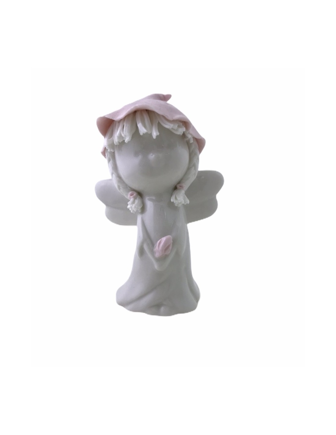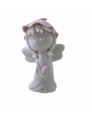 6 PEZZI DI STATUINE ANGELO IN PORCELLANA BIANCA CON CAPPELLO ROSA IN PORCELLANA