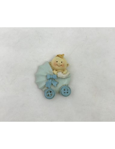 12 PEZZI DI MAGNETE BIMBO CON CARROZZINA CELESTE IN RESINA