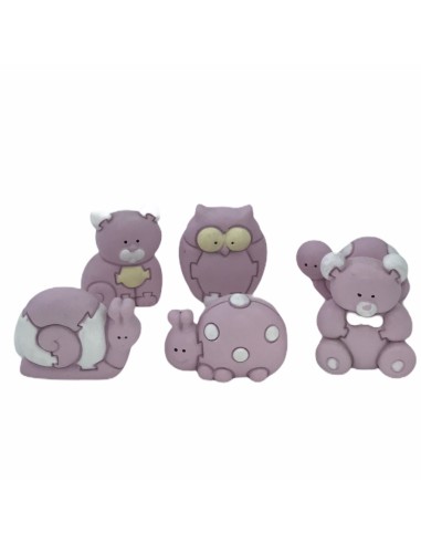 24 PEZZI DI STATUINA ANIMALETTI ASSORTITI ROSA IN RESINA