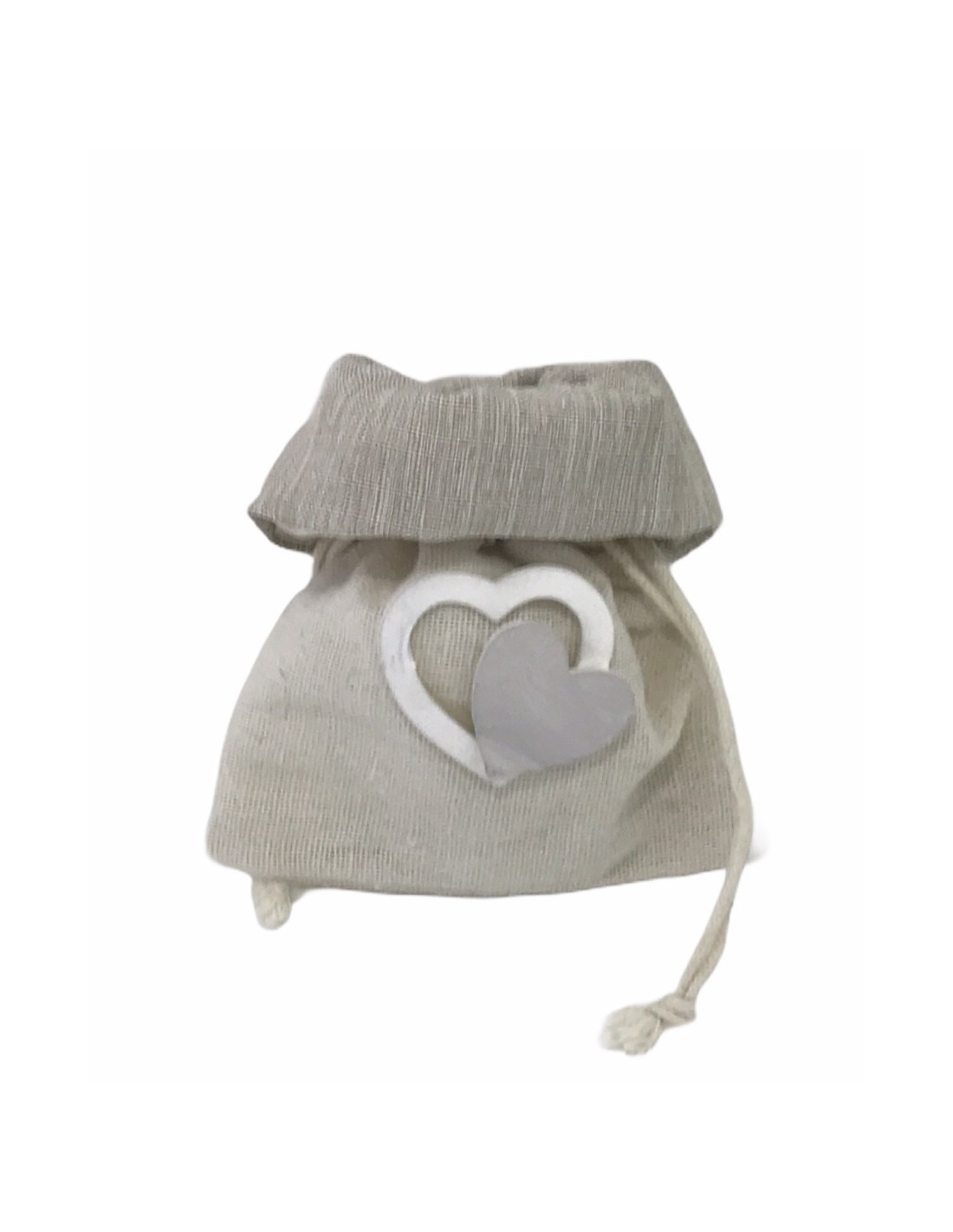 12 PEZZI DI SACCHETTINI IUTA PANNA E TORTORA,CON CUORE IN LEGNO