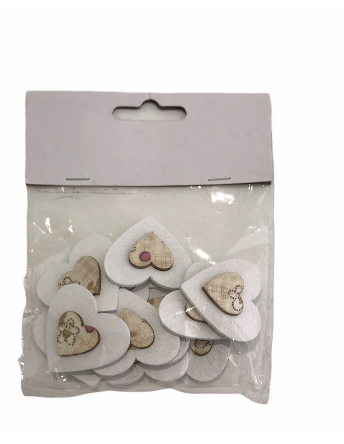12 PEZZI DI APPLICAZIONI CUORE LEGNO BIANCO E PANNA