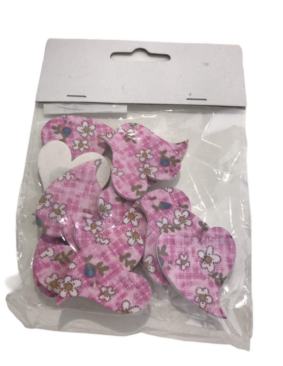 12 PEZZI DI APPLICAZIONI CUORE LEGNO ROSA DECORATO