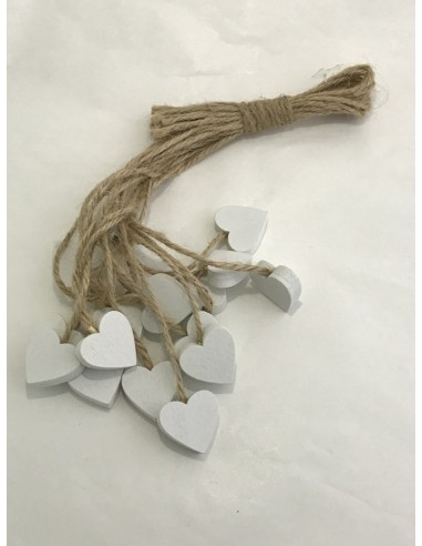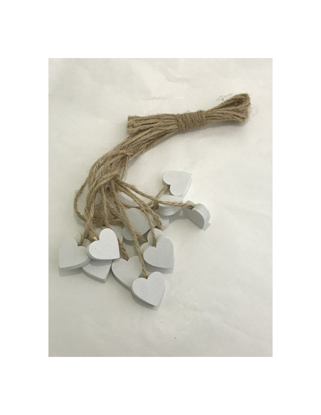 16 PEZZI DI APPLICAZIONI CUORE LEGNO BIANCO
