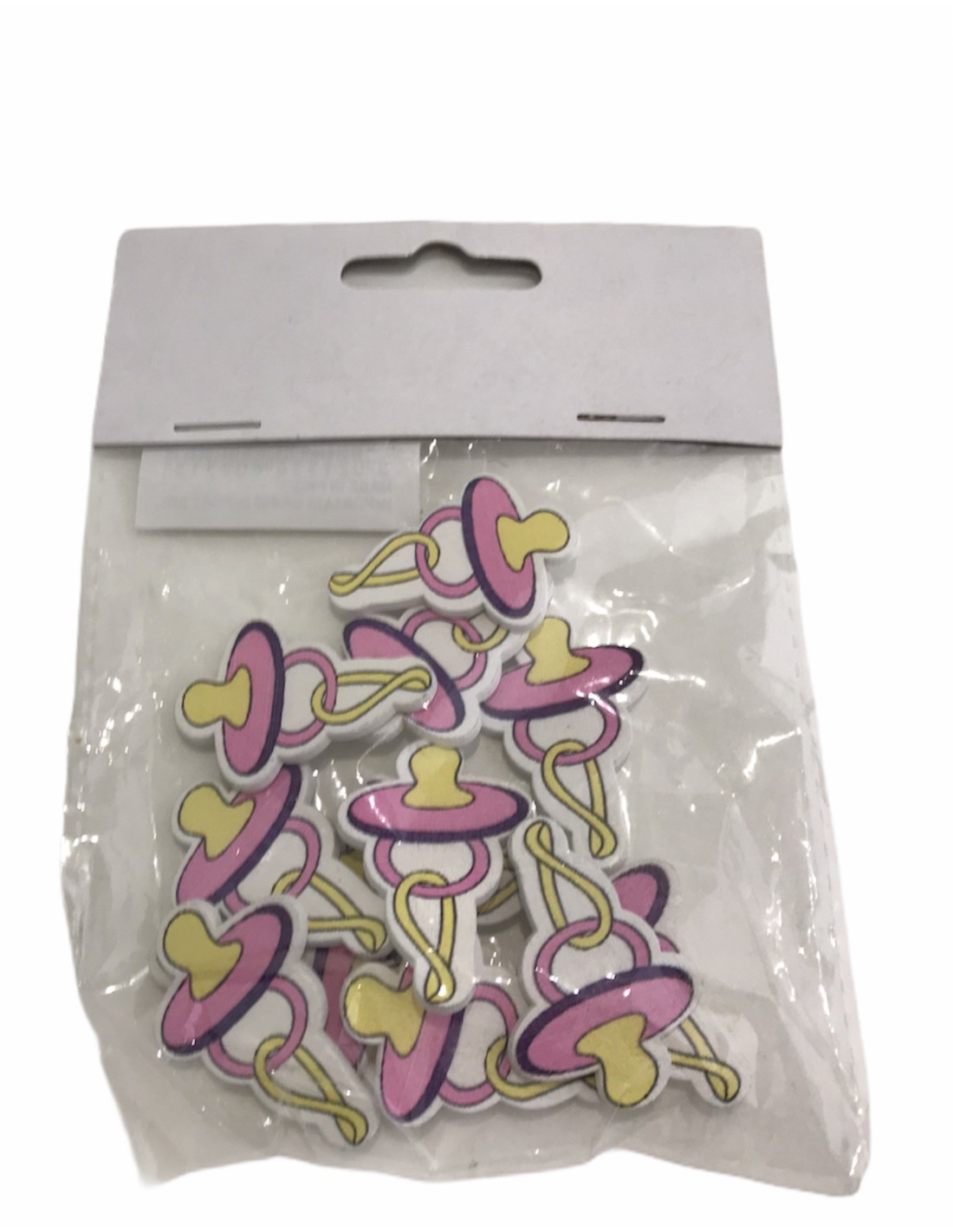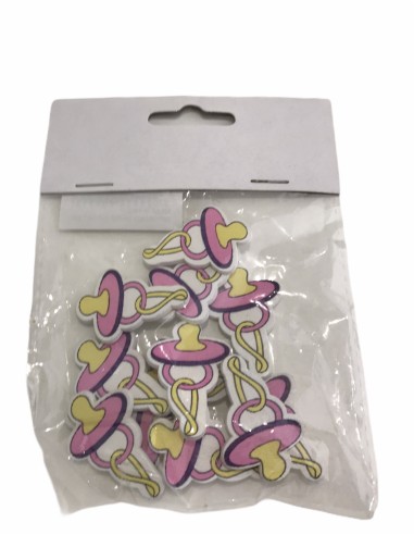 12 PEZZI DI APPLICAZIONI CIUCCIO LEGNO ROSA