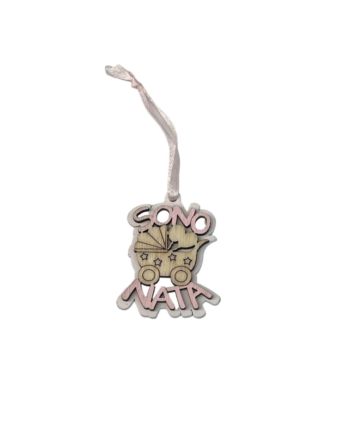 12 PEZZI DI APPLICAZIONI CULLA LEGNO CON SCRITTA SONO NATA