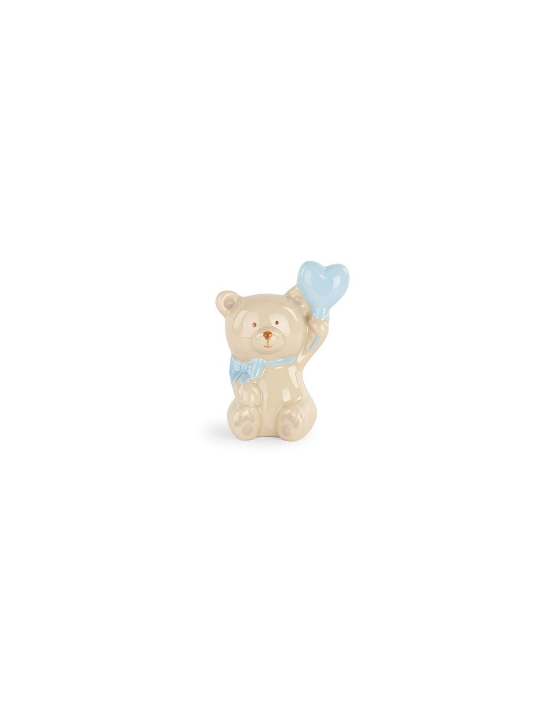 12 PEZZI DI STATUINA ORSO PANNA ,IN PORCELLANA CON CUORE CELESTE