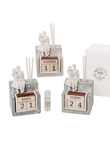 3 PEZZI DI DIFFUSORE CON SPOSI E CALENDARIO IN LEGNO E TERRACOTTA