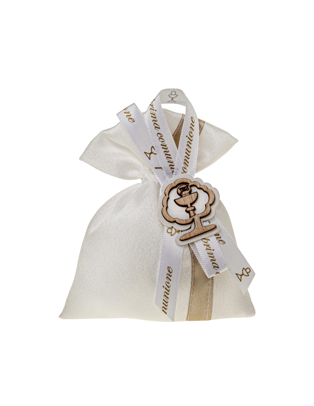 12 PEZZI DI SACCHETTI RASO CON NASTRO E APPLICAZIONE CALICE IN LEGNO