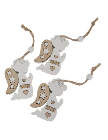 12 PEZZI DI APPENDINO ANGELO IN RESINA E LEGNO
