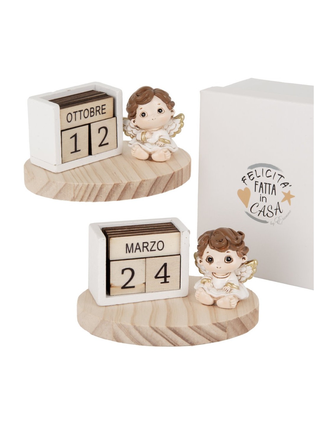 2 PEZZI DI STATUINA CALENDARIO ANGELO IN RESINA E LEGNO