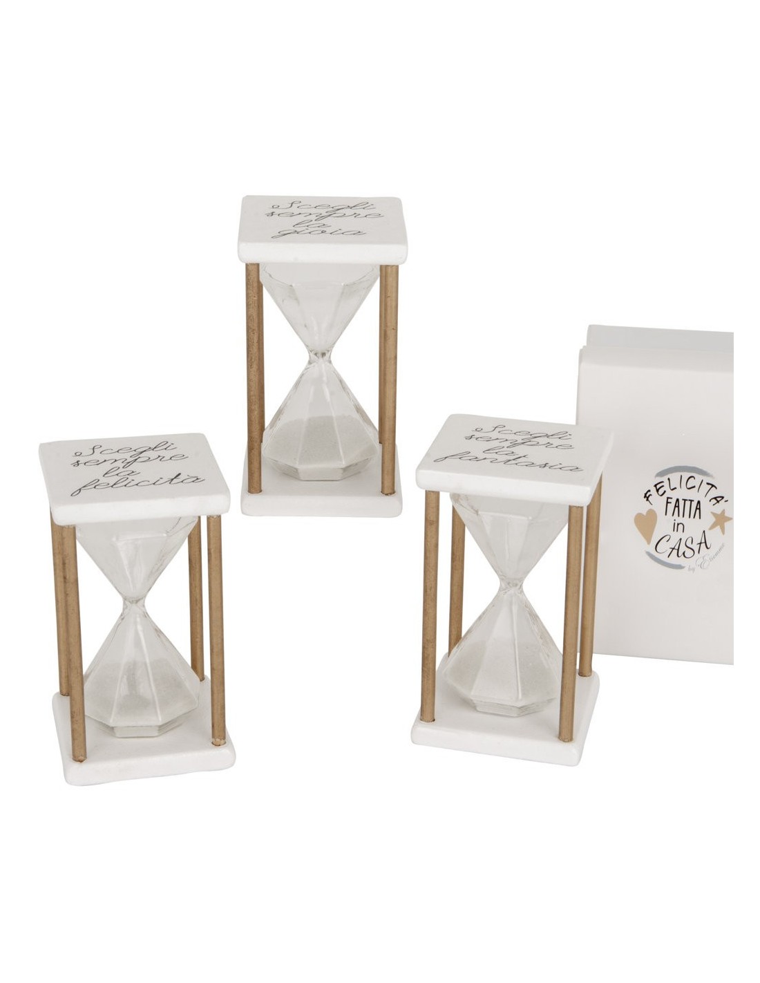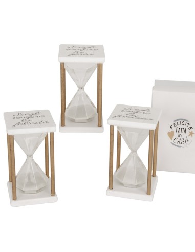 3 PEZZI DI CLESSIDRE IN VETRO CON BASE IN LEGNO