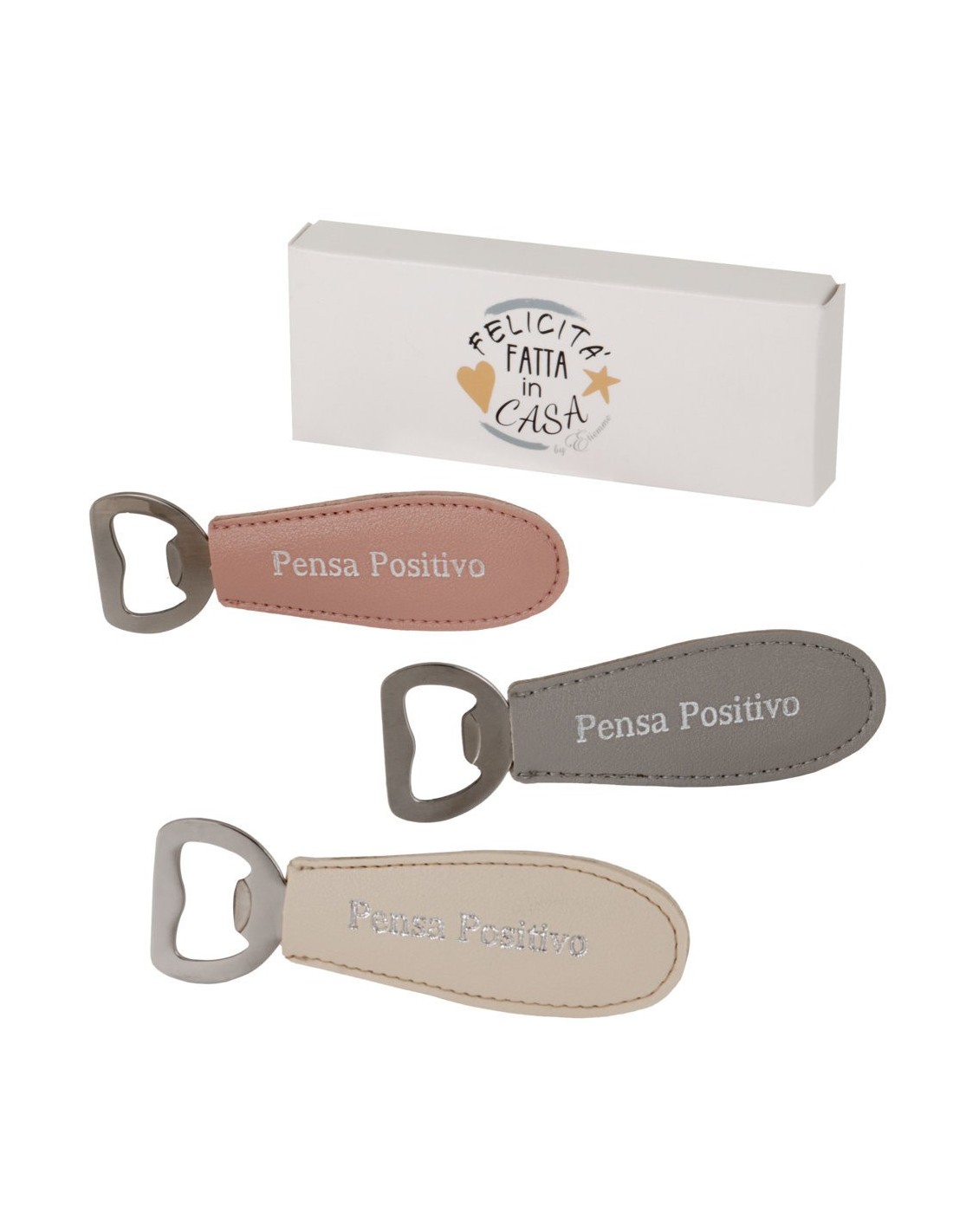 3 PEZZI DI APRI BOTTIGLIA CON MANICO IN ECOPELLE ASSORTITO DI COLORE