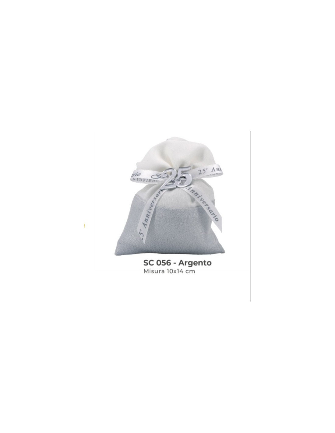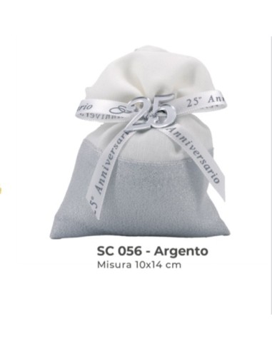 10 PEZZI DI SACCHETTI IN TESSUTO  ARGENTO CON NUMERO 25 IN PLEXIGLASS
