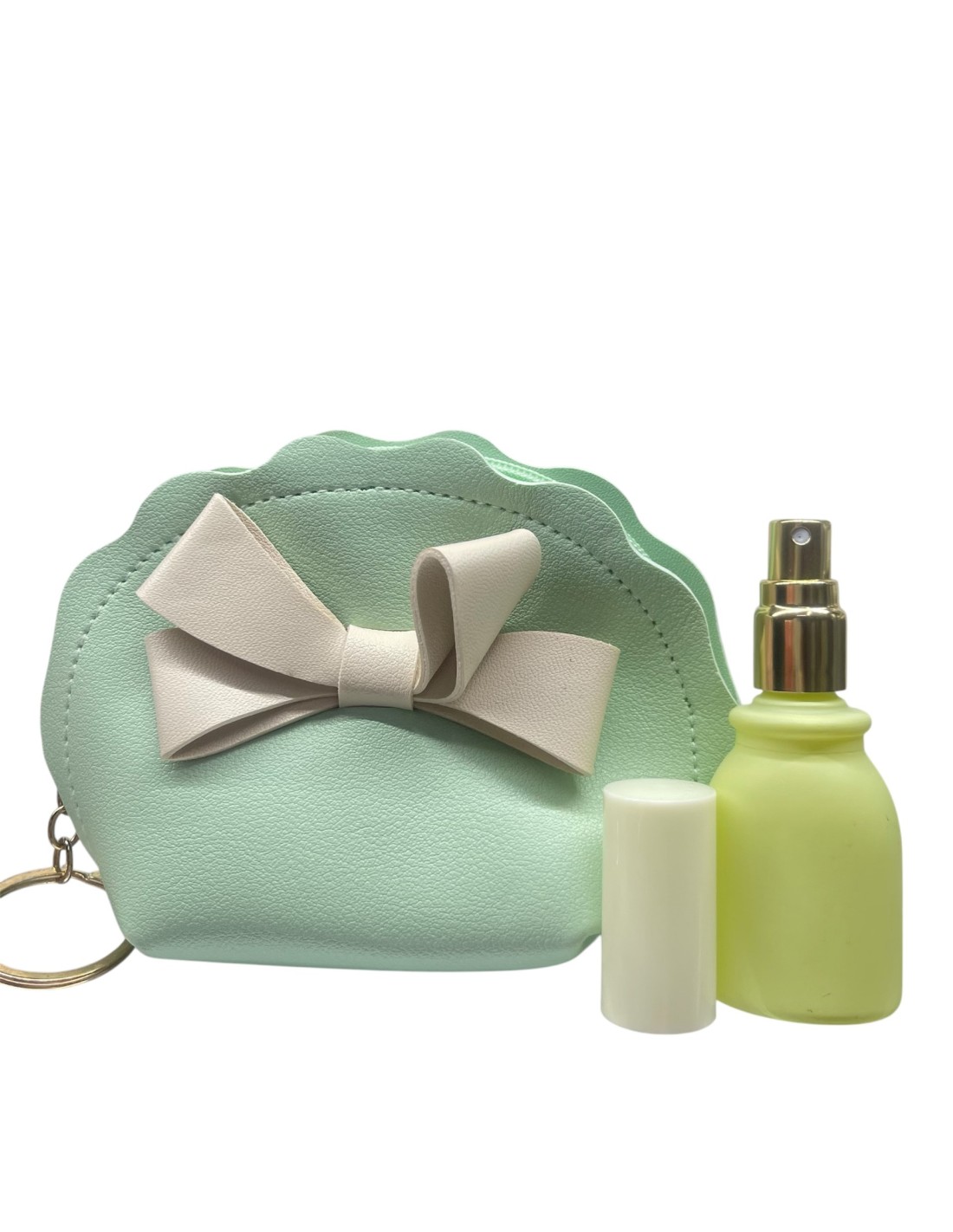 12 PEZZI DI BORSETTA IN PELLE VERDE CON FIOCCO IN PELLE BIANCO