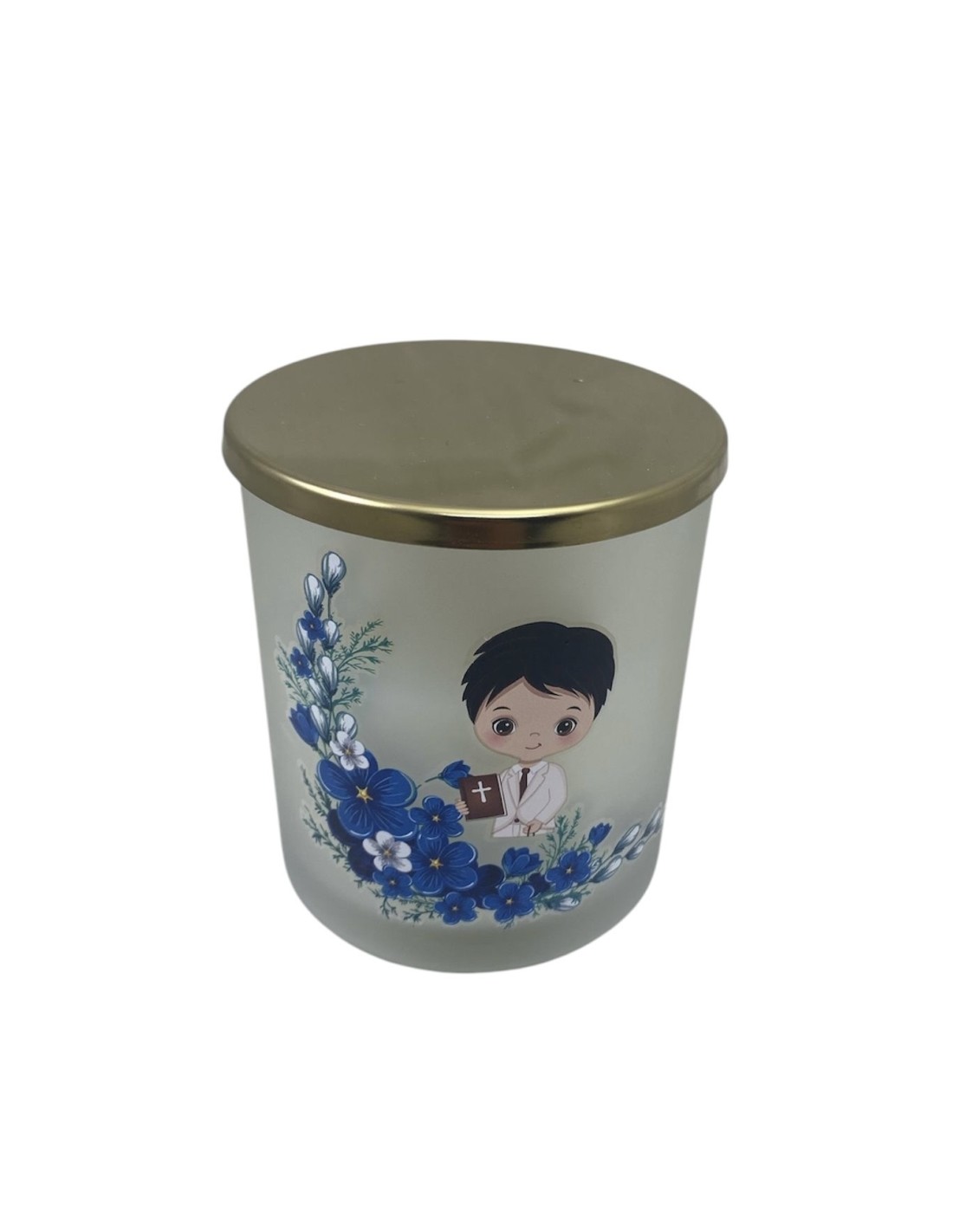 CANDELA IN VETRO CON IMMAGINE BIMBO COMUNIONE